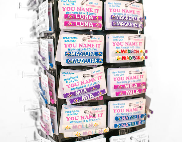 Twigglebox personalized Hair Barrettes are available at a reduced wholesale cost to our approved retail stores. If you own a retail location and are interested in carrying our unique line of Personalized Hair Barrettes, please contact us at the number below. Our friendly sales and office staff will assist you in obtaining a full retail display, FREE with product purchase.
